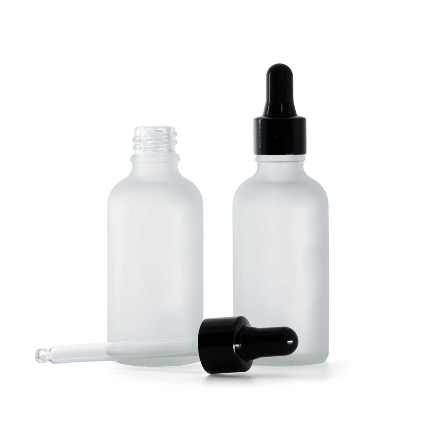 Tiszta, fagyos üvegpalack, fényes fekete cseppentő, 50 ml