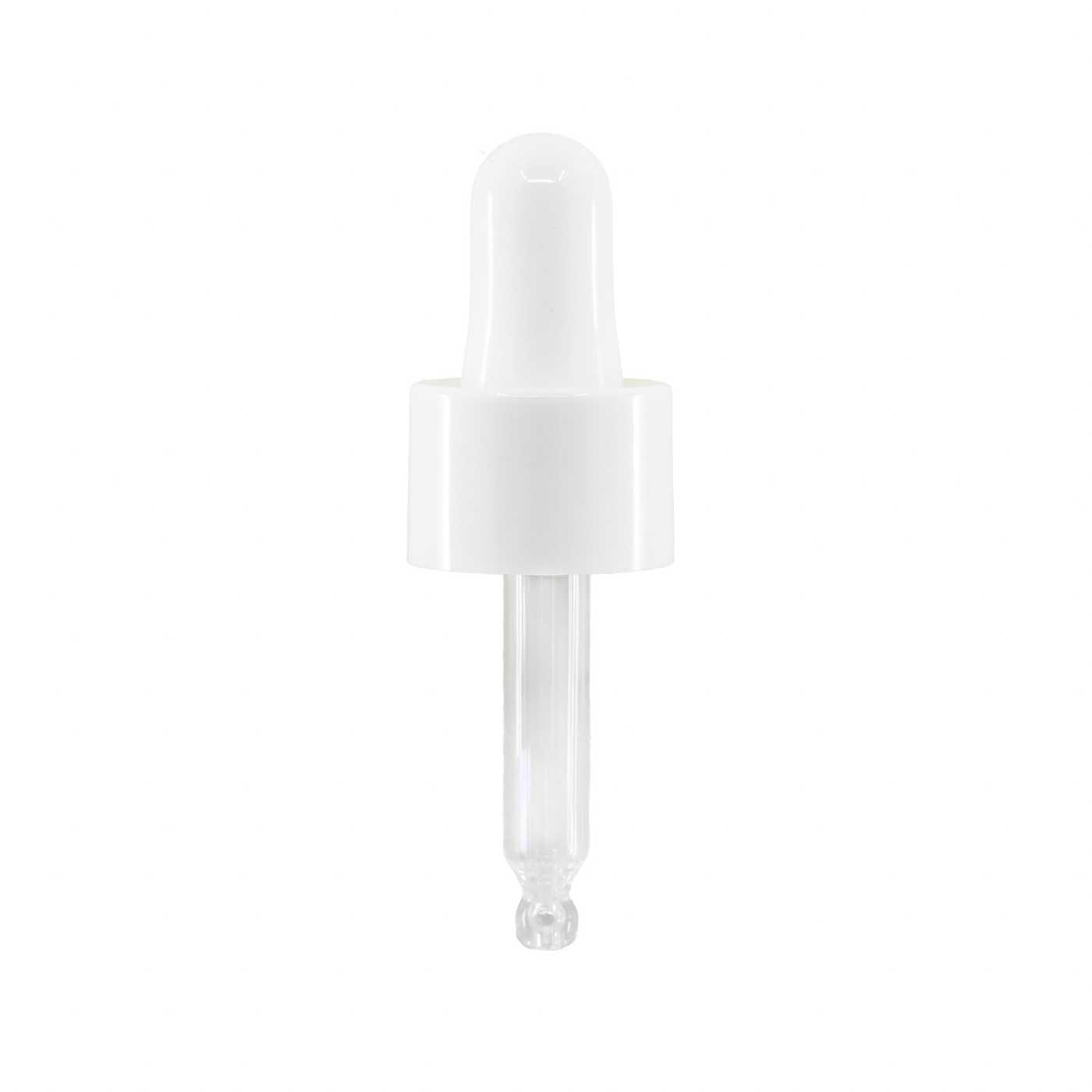 Fehér, fényes színű üvegcseppentő, amely 18 mm nyakátmérőjű és 10 ml térfogatú palackokhoz alkalmas.