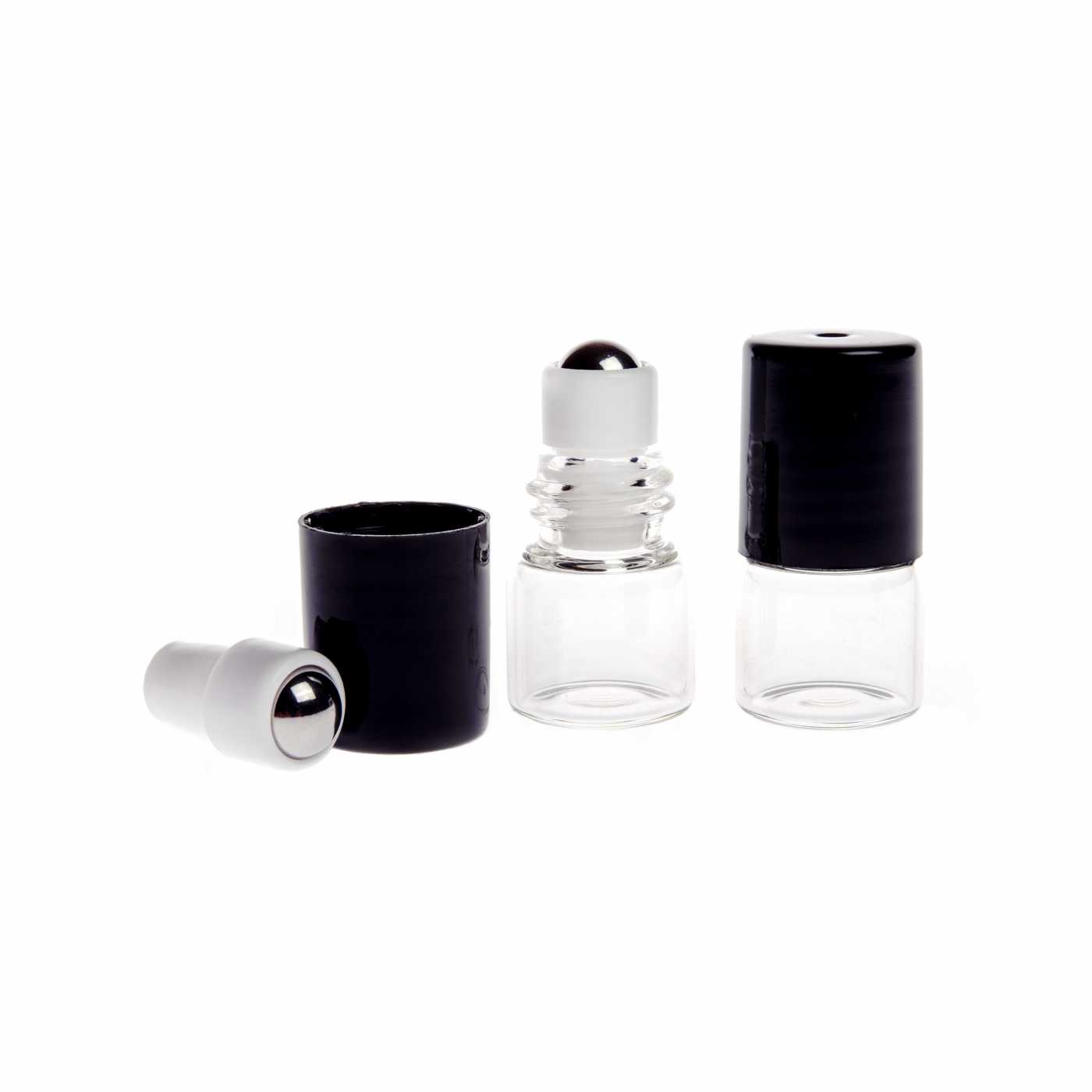 Üveg golyós roll-on 2 ml átlátszó fekete kupakkal