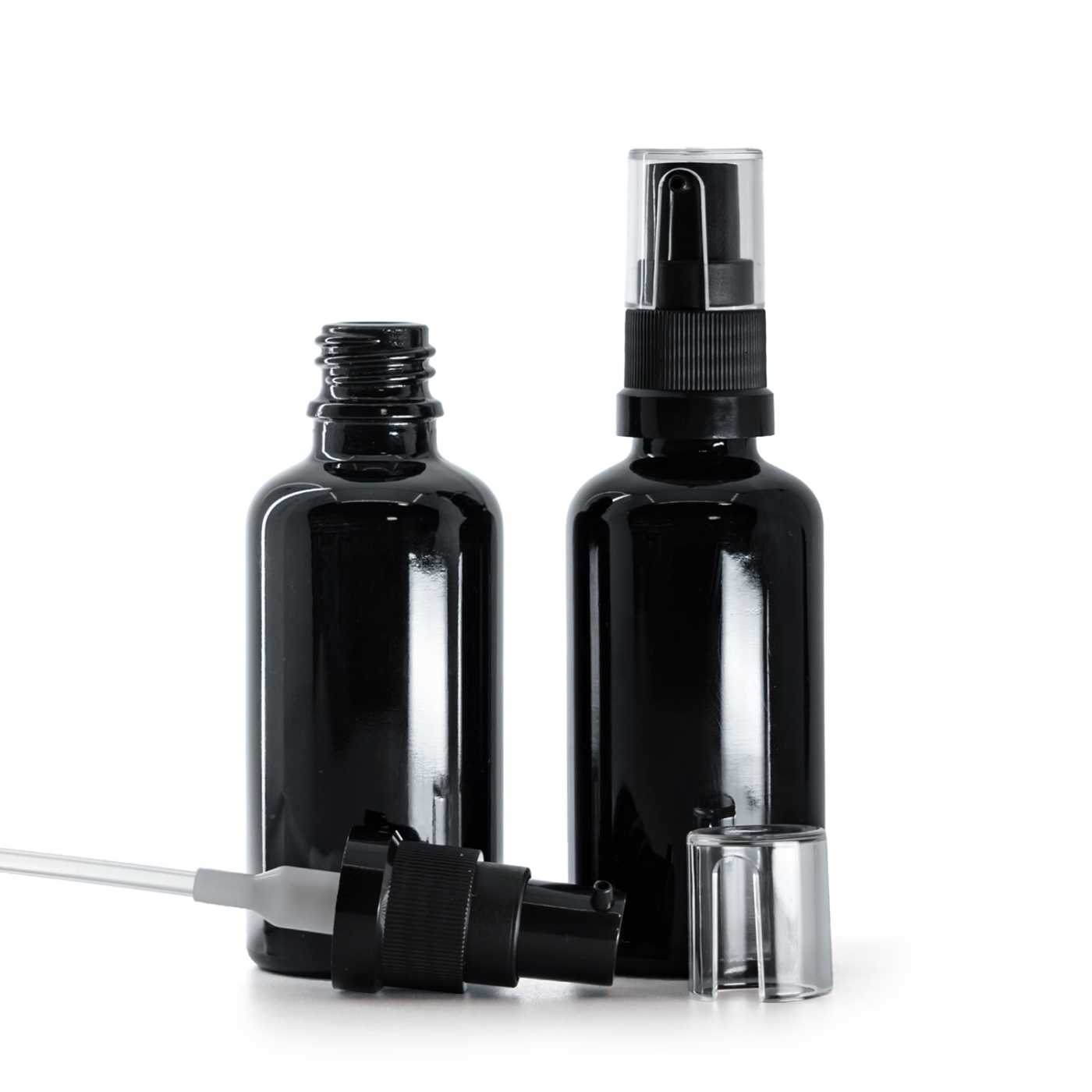 Üvegpalack, fényes fekete, olajadagoló pumpa, 50 ml