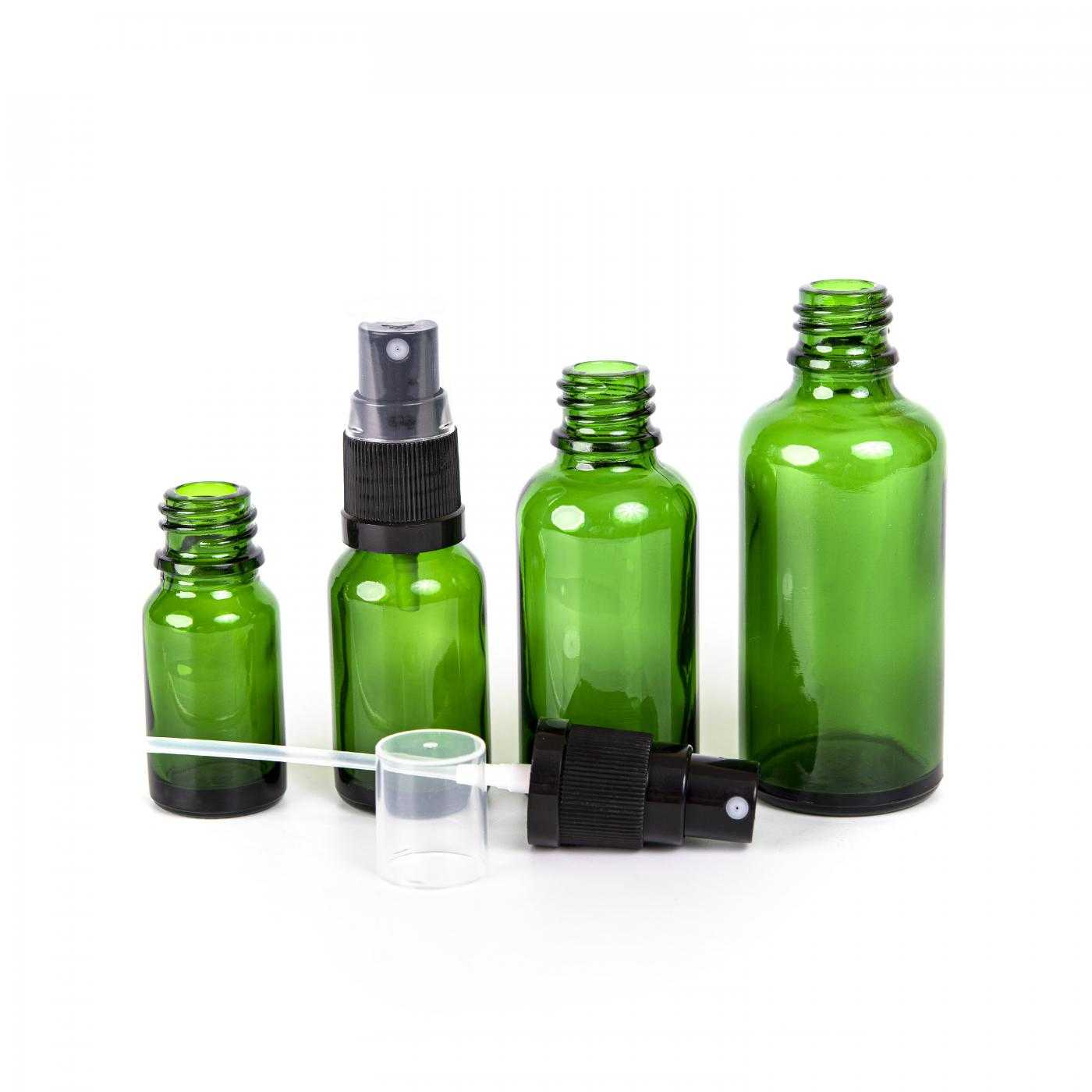 Zöld üvegpalack fekete permetezőfejjel 100 ml
